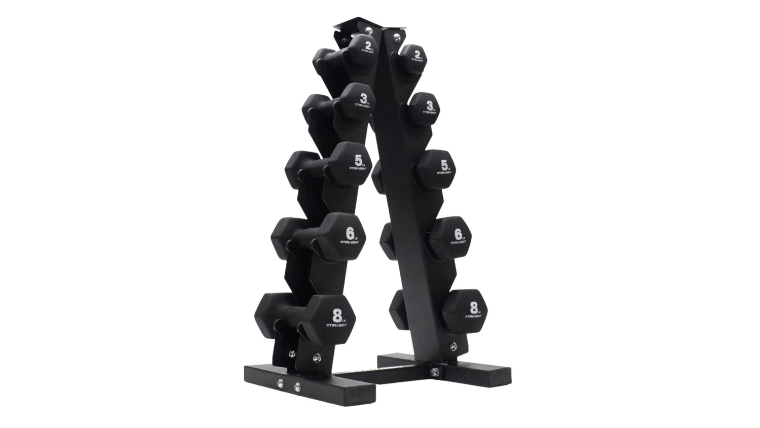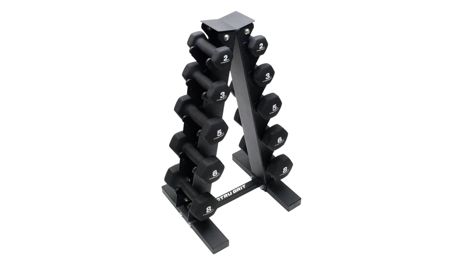 The A-frame design accommodates five pairs of dumbbells and will help you manage your gym equipment and keep the floor clear.