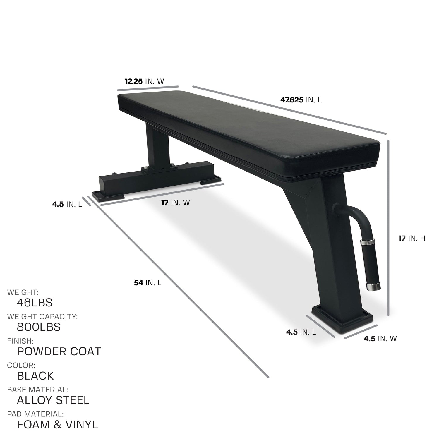 The tripod design allows you to keep your feet flat on the ground for improved balance and form. So, can the fixed flat bench withstand heavy weight exercise? The flat weight bench has a weight capacity of 800lbs and features wide-stance legs and rubber foot pads for further stability. With a robust steel construction and a high-density cushioned bench pad, this workout utility bench punches above its weight at just 46 pounds.